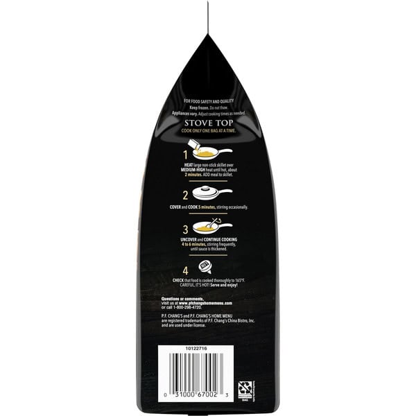 For food safety and quality. Keep frozen. Do not thaw. Appliances vary. Adjust cooking times as needed. Stove Top: Cook only one bag at a time. 1. Heat large non-stick skillet over medium-high heat until hot, about 2 minutes. Add meal to skillet. 2. Cover and cook 5 minutes, stirring occasionally. 3. Uncover and continue cooking 4 to 6 minutes, stirring frequently, until sauce is thickened. 4. Check that food is cooked thoroughly to 165 degrees F. Careful, it’s hot! Serve and enjoy!