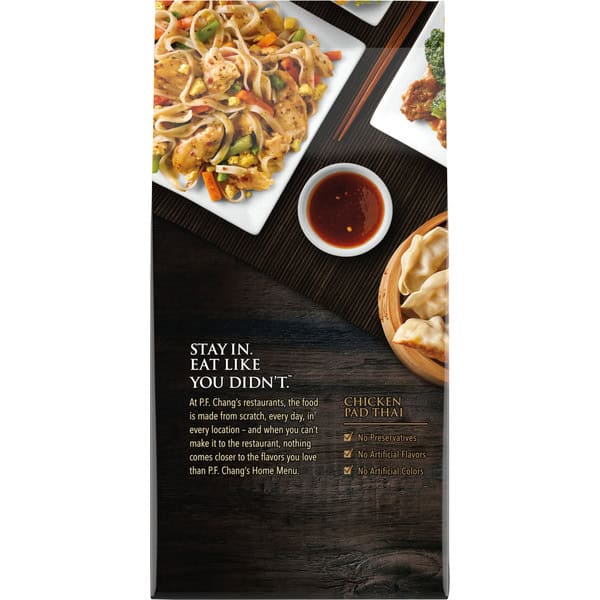 Experience a delicious, restaurant-style dining experience at home with P.F. Chang’s Home Menu Chicken Pad Thai Skillet Meal. Featuring chicken breast and rice noodles with green onions, carrots and scrambled egg with a made-from-scratch, Thai-inspired tamarind sauce for frozen meals with authentic Asian food flavor. This frozen meal contains no artificial flavors, colors or preservatives, ensuring delicious and satisfying frozen entrees every time. Ideal for when you’re craving a special family meal, these frozen noodles skillet meals provide the gourmet experience of restaurant-quality cuisine in quick frozen meals that can be prepared in the comfort of your home. Simply cook this frozen food on the stove top according to the package instructions for easily prepared meals in minutes. Store this meal kit in your freezer until you’re ready to enjoy. Stay in. Eat like you didn’t. Far from ordinary, P.F. Chang’s Home Menu creates a gourmet Asian experience in your own kitchen. Simple, fresh ingredients balance one another to bring out all the best flavors—that’s how easy Asian food is done.