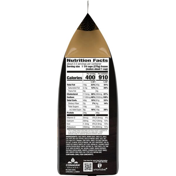 Sauce (water, Brown Sugar, Canola Oil, Garlic, Chili Paste [red Chili Peppers, Distilled Vinegar, Garlic, Salt], Salt, Less Than 2% Of: Tamarind, Modified Corn Starch, Ginger, Fish Sauce [anchovy, Sea Salt], Cilantro, Distilled Vinegar, Lime Juice Concentrate, Lime Oil), Cooked Rice Noodles (water, Rice Flour, Soybean Oil), Seasoned Cooked Chicken (chicken Breast, Water, Vegetable Oil, Corn Starch, Less Than 2% Of: Dried Egg Whites, Salt, Natural Flavors, Sodium Phosphate), Vegetables (green Onions, Carrots), Scrambled Egg Product (whole Eggs, Modified Corn Starch, Salt, Citric Acid, Xanthan Gum).