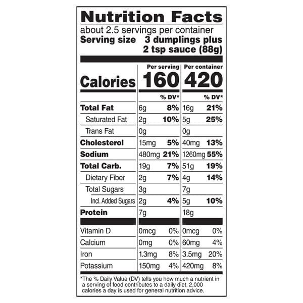 • Frozen food contains around 8 dumplings, or 2.5 servings