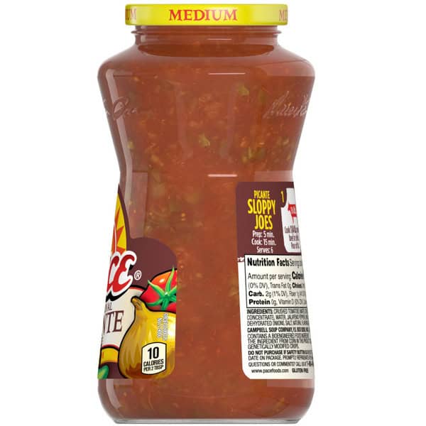 Get ready to fire up your taste buds with Pace® Medium Picante Sauce, the ultimate flavor enhancer that guarantees to liven up any dish. With over 75 years of legendary flavor, Pace is the trusted, iconic brand that never compromises on quality. No artificial colors, flavors, or preservatives—just the real deal.