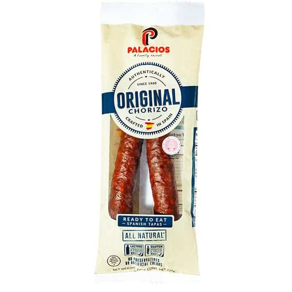 Spanish tapas. Ready to eat. All natural (All Natural: No artificial ingredients, minimally processed). 100% lactose free. 100% gluten free. No preservatives. No artificial colors. MSG free. Spain inspected and passed. A family secret. Since 1960. Packed in protective atmosphere. www.palacios.us. Tel: (305) 477-1650. Authentically crafted in Spain.