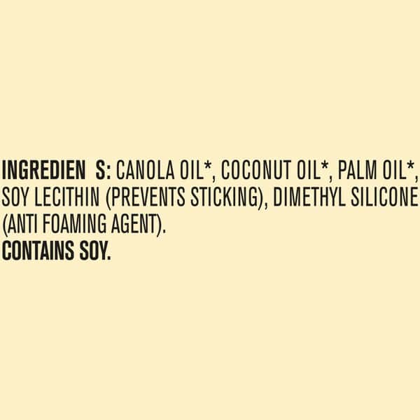 Canola Oil*, Coconut Oil*, Palm Oil*, Soy Lecithin (prevents Sticking), Dimethyl Silicone (anti Foaming Agent), *adds A Trivial Amount Of Fat
