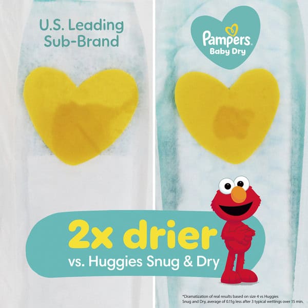 A good night’s sleep starts with a great diaper, and Pampers Baby-Dry diapers give you and your baby up to 100% leakproof nights and happy mornings. Made to protect your baby’s delicate skin, our exclusive LockAway Channels absorb wetness and lock it safely away, while our protective Dri-Weave Liner helps keep skin healthy. Plus, our Baby-Dry diapers are hypoallergenic and completely free of parabens and latex.* These are just a few of the many reasons Pampers is the #1 pediatrician recommended diaper brand**-and your baby’s best bet for comfy protection. Pampers diapers also keep messes to a minimum. To help contain leaks and prevent messes, our Baby-Dry diapers feature all-around stretchy sides and large tape fasteners for a secure and comfy fit whether your baby is sleeping, crawling or walking. Plus, they come equipped with our Dual Leak-Guard Barriers that are specially designed to protect around the legs, where leaks tend to happen most. And when your baby is due for a diaper change, our handy Wetness Indicator lets you know. So there’s no need for guesswork. Use Baby-Dry diapers with our Pampers Baby-Clean Wipes to help keep your baby’s skin healthy and prevent irritation. Packaging and prints may vary. Ships in 100% recyclable packaging. *Natural Rubber. **Based on a 2021 survey of U.S. and Canadian pediatricians.