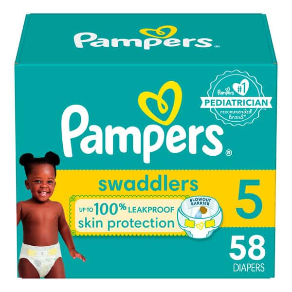 What keeps baby’s skin healthy? A diaper that doesn’t leave skin wet. That’s why Pampers Swaddlers absorbs wetness better** and provides up to 100% leakproof skin protection and up to 0% skin irritation to help keep your baby’s skin dry and healthy. Pampers Swaddlers are the #1 best-selling diaper* for good reason. A Blowout Barrier helps prevent leaks from escaping at the back of the diaper and Dual Leak-Guard Barriers at the legs protect where leaks happen most. With Swaddlers, you can rest assured that you have superior leak protection** while keeping baby’s skin healthy. That’s why Pampers Swaddlers are the #1 choice of U.S. hospitals, nurses and parents.*** Pampers BreatheFree Liner wicks away wetness, allowing baby’s skin to breathe, while the LockAway Channels lock wetness away to help keep baby’s skin dry and healthy. Pampers Swaddlers are dermatologist approved by the Skin Health Alliance, hypoallergenic, and free of parabens and latex, so you can trust them to be safe and gentle on your little one’s delicate skin. Pampers Swaddlers are available in sizes Preemie through size 8 and feature designs with our newest animal characters, Shiloh the Elephant and Freddy the Duck! For trusted protection, trust Pampers, the #1 pediatrician recommended brand. Product and packaging may vary. Download the Pampers Club App today and earn Pampers Cash! Redeem your Pampers Cash for exclusive Pampers coupon savings and rewards. *Based on Nielsen dollar sales, L52W **Based on size 2 vs. leading value brand *** #1 choice of U.S. hospitals, nurses and parents: hospitals based on sales data; nurses vs. other hospital brands, among those with a preference; parents based on retail sales. ****Only redeemable via Pampers Club. No cash value. 0% PARABENS AND LATEX: Latex-natural rubber.
