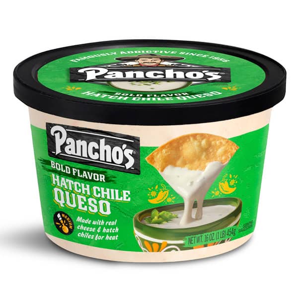 Rich and creamy: Pancho’s Green Hatch Chile Queso recipe is made with real cheese with well-loved green hatch chile flavor, for a medium sweet and smoky heat.