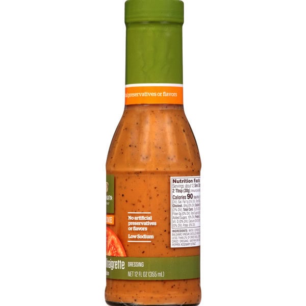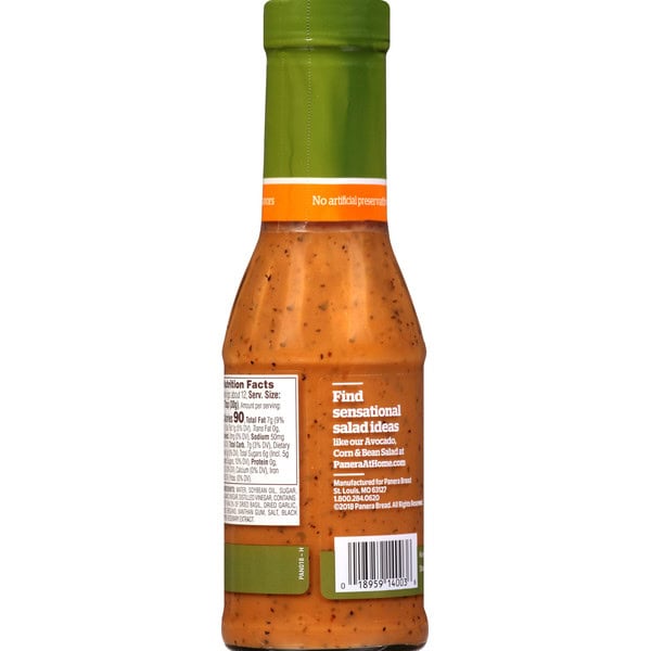 Panera Balsamic Vinaigrette Dressing is a classic, bakery-cafe inspired salad dressing that delivers a sweet, robust flavor. This low sodium salad dressing features richly flavored balsamic vinegar infused with notes of garlic, basil and rosemary. This balsamic vinaigrette also brings that delectable taste that reminds you of a restaurant quality salad right at home. Made with no artificial preservatives, sweeteners, flavors, or colors from artificial sources, this low sodium balsamic salad dressing is also dairy free, gluten free and vegetarian. Whether you need to add more taste to your homemade salads or a light marinade, this Panera dressing will not disappoint. Store this vinaigrette salad dressing bottle in the fridge after opening to maintain flavor and freshness. Make easy, craveable meals with this gluten free salad dressing.