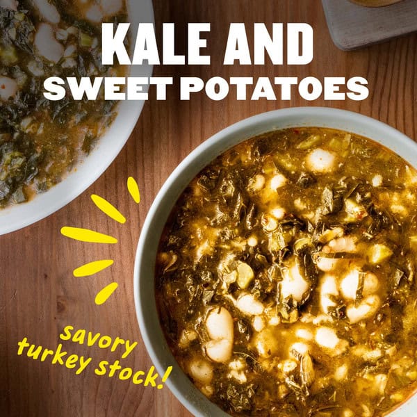• Offers a hearty medley of Italian turkey sausage, whole grains, kale and sweet potatoes simmered in a savory turkey stock