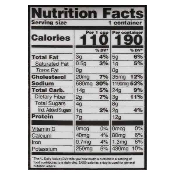 Heating Instructions: Stove Top: Remove lid & film. Pour soup into sauce pan. Heat thoroughly (165 degrees F) do not boil. Microwave: Remove lid & film. Place cup on microwave-safe plate. Cover loosely. Heat on high 3-4 minutes (times may vary) until hot (165 degrees F). Stir halfway through. Let stand 1 minute in microwave. Carefully remove by the plate. Caution! Soup & container will be very hot.