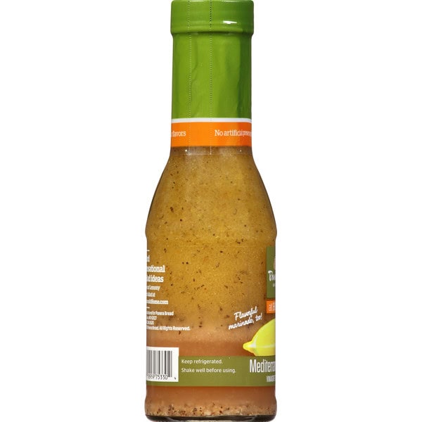 Panera Mediterranean Lemon Vinaigrette Dressing is a bakery-cafe inspired favorite infused with flavors of the region that inspires it. This Mediterranean salad dressing features a light blend of lemon juice, white wine vinegar and traditional herbs. This lemon salad dressing also brings that delectable taste that reminds you of a restaurant quality salad right at home. Made with no artificial preservatives, sweeteners, flavors, or colors from artificial sources, this Panera salad dressing is also dairy free and vegetarian. Whenever you need to add more taste to your homemade salads or a light marinade, this Panera dressing will not disappoint. Store this salad dressing bottle in the fridge after opening to maintain flavor and freshness. Make easy, craveable meals with help from Panera Bread at home.