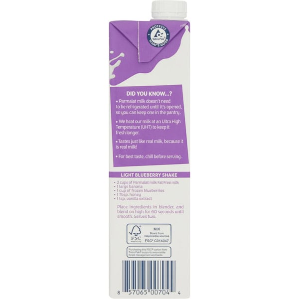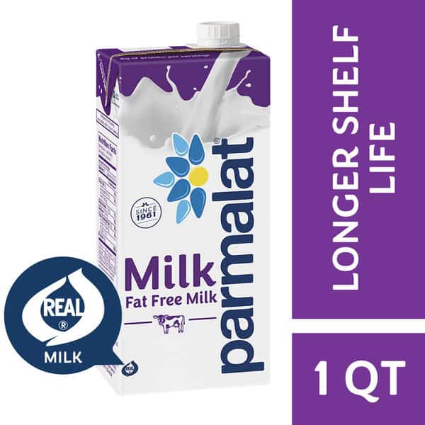 8 g protein per serving! Fat free. Vitamins A & D No preservatives. Real. UHT. Our Promise: 100% Real Milk: Enjoy the fresh taste of high quality Grade A cow milk, with no preservatives. A Nutritious Glass of Milk: Our milk is packed full of good things such as vitamins A and D, protein, and calcium. Stays fresh longer! Here at Parmalat, we heat our milk at higher temperatures than regular pasteurized milk. This way, our milk stays fresh longer, and doesn’t need to be refrigerated until opened. Bringing you quality milk since 1961. Did you know? Parmalat milk doesn’t need to be refrigerated until it’s opened, so you can keep one in the pantry. We heat our milt at an Ultra High Temperature (UHT) to keep it fresh longer. Tastes just like real milk, because it is real milk!