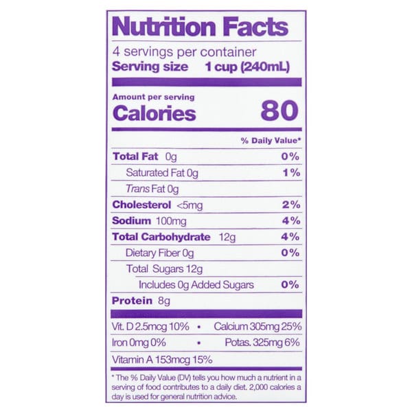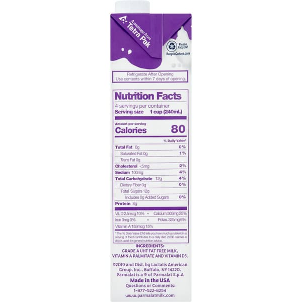 Grade A Uht Fat Free Milk, Vitamin A Palmitate, Vitamin D3