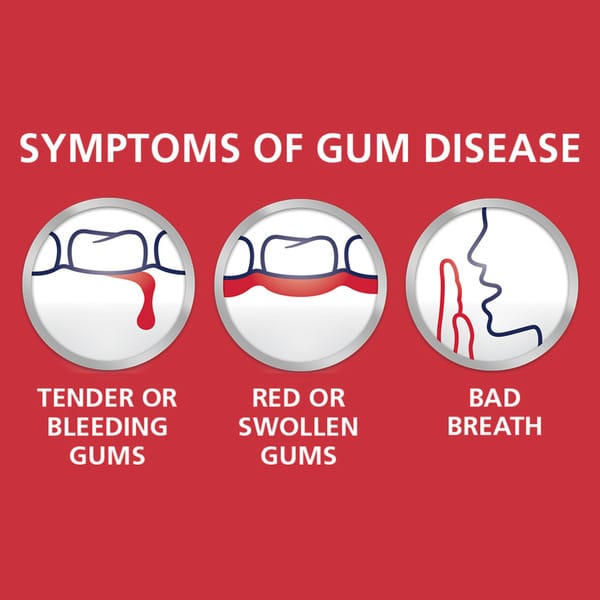 Warnings Stop use and ask a dentist if gingivitis, bleeding, or redness persists for more than 2 weeks. you have painful or swollen gums, pus from the gum line, loose teeth, or increasing spacing between the teeth. These may be signs or symptoms of periodontitis, a serious form of gum disease. Keep out of reach of children under 6 years of age. If more than used for brushing is accidentally swallowed, get medical help or contact a Poison Control Center right away.