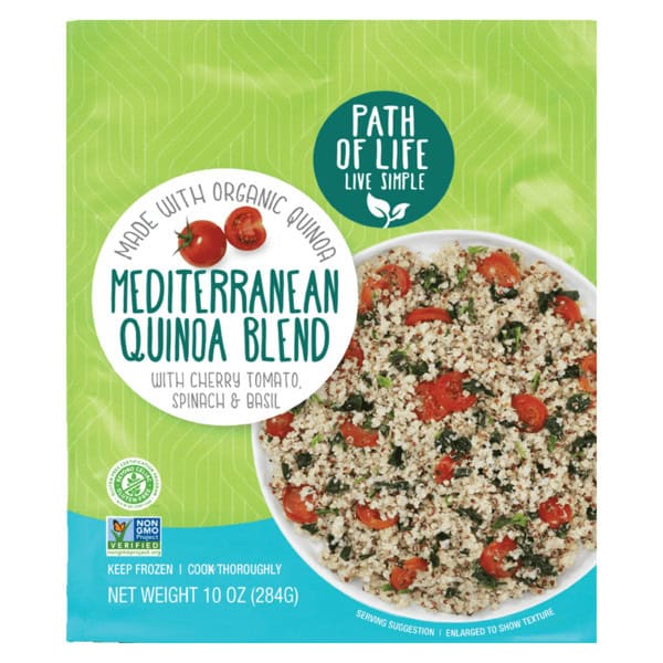 Mediterranean quinoa blend with cherry tomato, spinach & basil. Made with organic quinoa. Gluten-free Certification program. www.gf-cert.org. Beyond celiac. Gluten-free. Certified organic by Oregon Tilth. Non GMO project verified. nongmoproject.org. Path of life. Live simple. Did you know that basil is part of the mint family? Simple quinoa blends. We’ve got flavor, and we don’t like to brag, But. Made with organic quinoa. Plant-based. Fruit or vegetables? Satisfies cravings for plant-based and gluten-free lifestyles. pathoflifebrand.com. Visit us at pathoflifebrand.com for recipe inspiration and more product info. Love it? Problem? Question? Give us a shout! Email info(at)pathoflifebrand.com or call (844) 248-9997. Please recycle.