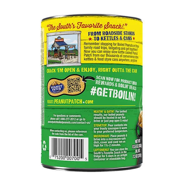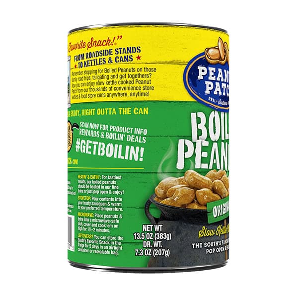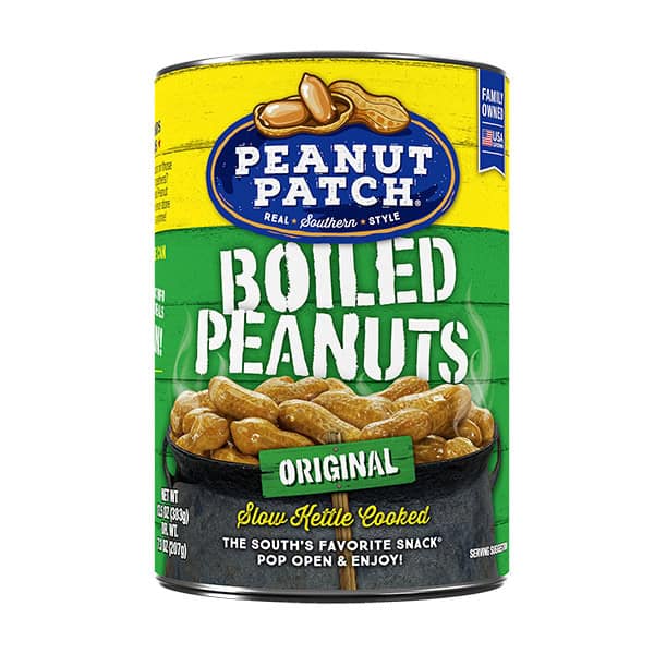 Discover the South’s favorite snack with Peanut Patch Original Boiled Peanuts. These gluten free flavored peanuts are boiled in a Southern style brine with traditional Southern seasoning until the shell is perfectly soft, offering up melt-in-your-mouth goodness. Just heat and eat for that rich, peanutty flavor you crave. Peanut Patch carefully selects only the most tender, green peanuts for optimal plumpness. Every batch of fresh nuts is meticulously grown by local farmers in South Carolina and quickly canned for that classic Southern flavor that starts from the ground up. So whether you’re a greenhorn or grew up on canned boiled peanuts, try America’s best-selling brand to embark upon a taste adventure! Real. Southern. Style. It’s what makes Peanut Patch the Gold Standard of canned peanuts.