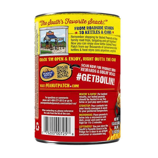Peanut Patch Cajun Boiled Peanuts pack a Cajun kick to the South’s favorite snack. These spicy peanuts are boiled in a Cajun seasoning blend that’s sourced straight from the Bayou, including red peppers, onions and garlic. Peanut Patch carefully selects the most tender, green peanuts for optimal plumpness in every mouthful. Every batch of fresh nuts is meticulously grown by local farmers in South Carolina and quickly canned to capture that classic Southern flavor that starts from the ground up. So whether you’re a greenhorn or grew up on canned boiled peanuts, embark upon a taste adventure with this kickin’ Cajun snack from America’s best-selling brand. Real. Southern. Style. It’s what makes Peanut Patch the Gold Standard of canned peanuts.
