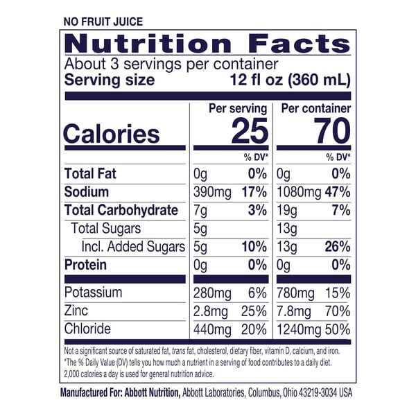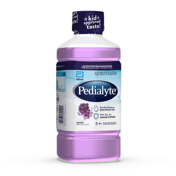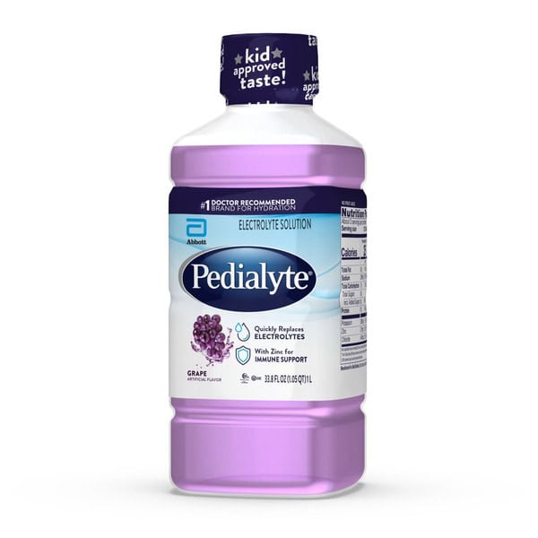 Pedialyte Electrolyte Solution drinks are designed for fast, effective hydration. This electrolyte drink has 2x the electrolytes and 75% less sugar vs the leading sports drink.* When you’re dealing with dehydration†due to vomiting, diarrhea, or extreme sweating caused by excessive heat or prolonged exercise, get Pedialyte, the #1 doctor-recommended brand for hydration. It’s great for kids and adults and has been rehydrating families for over 50 years. This electrolyte drink comes in 7 great flavor options: Grape, Strawberry, Mixed Fruit, Coconut Burst, Iced Berry, Fruit Punch, and Cherry Frost. Coconut Burst has no artificial colors. * Pedialyte Classic liquid liters (excluding unflavored) have 1080mg sodium and 13g sugars per liter; leading sports drink has ~460 sodium and ~58g sugars per liter. †Mild to moderate dehydration.