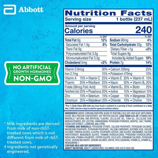 ‡ Milk ingredients are derived from milk of non-rbST-treated cows which is not different from milk of rbSTtreated cows.