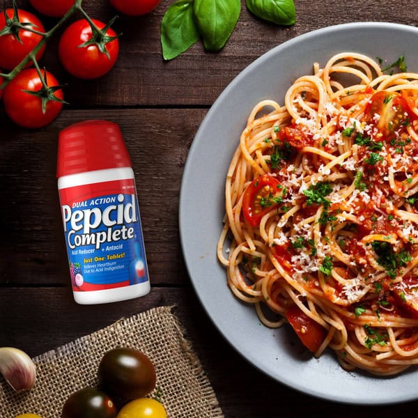Quickly relieve heartburn & reduce acid associated with acid indigestion & sour stomach with Pepcid Complete Acid Reducer + Antacid Chewable Tablets. These berry flavored heartburn medicine + antacid chews combine a fast-working antacid & long-lasting acid reducer to help control acid all day or night.* Formulated with 10 mg of the acid reducer famotidine, 800 mg of the antacid calcium carbonate & 165 mg of the antacid magnesium hydroxide per tablet, this heartburn reliever helps to neutralize & control acid. The dual-action formula of these antacid chews starts working in seconds & lasts longer than Tums.*†Whether at brunch or a new food spot, use Pepcid Complete Berry Chewables for fast-acting heartburn relief. * Based on 9-hour acid control studies during the day & 12-hour acid control studies during the night. Acid control does not imply symptom relief. †Tums is a registered trademark of GlaxoSmithKline.