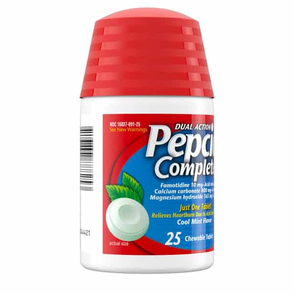 Quickly relieve heartburn & reduce acid associated with acid indigestion & sour stomach with Pepcid Complete Acid Reducer + Antacid Chewable Tablets. These mint flavored heartburn medicine + antacid chews combine a fast-working antacid & long-lasting acid reducer to help control acid all day or night.* Formulated with 10 mg of the acid reducer famotidine, 800 mg of the antacid calcium carbonate & 165 mg of the antacid magnesium hydroxide per tablet, this heartburn reliever helps to neutralize & control acid. The dual-action formula of these antacid chews starts working in seconds & lasts longer than Tums.*†Whether at brunch or a new food spot, use Pepcid Complete Berry Chewables for fast-acting heartburn relief. * Based on 9-hour acid control studies during the day & 12-hour acid control studies during the night. Acid control does not imply symptom relief. †Tums is a registered trademark of GlaxoSmithKline.