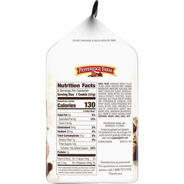 These delicious Pepperidge Farm Captiva Dark Chocolate Cookies are baked with an abundance of rich dark chocolate chunks, and the result is simply delicious. Satisfy your most decadent cookie cravings with soft and indulgent cookies that are perfectly paired with a glass of milk or simply enjoyed as an afternoon treat. With 8 Pepperidge Farm Captiva Dark Chocolate Cookies per bag, there’s always enough to share. For Pepperidge Farm, baking is more than a job. It’s a real passion. Each day, our bakers take the time to make every cookie, pastry, cracker, and loaf of bread the best way they know how – by using carefully selected, quality ingredients. With comforting goodness baked into everything we do, you’ll want to have Pepperidge Farm Captiva Dark Chocolate Cookies on hand to satisfy your indulgent cravings. We believe in doing things right, and we just happen to love it.