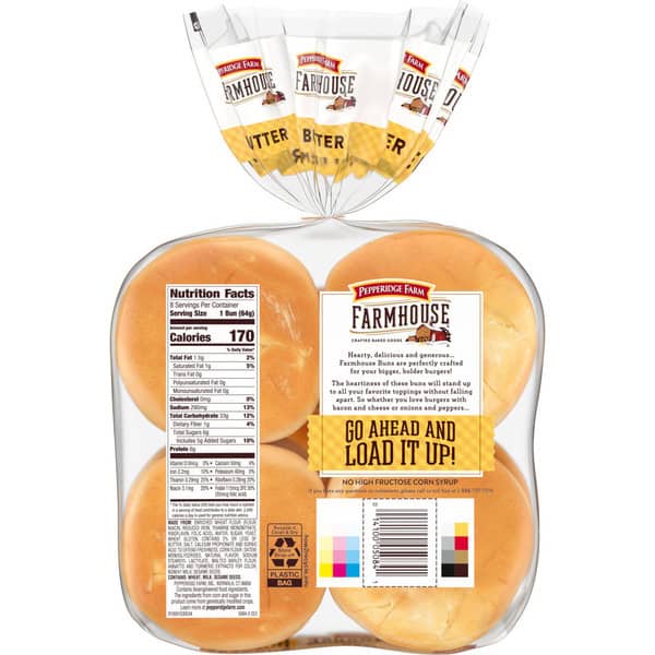 Add the comfort of homemade goodness in every bite with our Pepperidge Farm Farmhouse Butter Hamburger Buns. The flavors and textures of delicious, hearty buns just can’t be rushed, and that’s why our bakers bake our Farmhouse buns with deliberate, thoughtful care. Butter Hamburger Buns are perfectly crafted for a bigger, bolder burger! The heartiness of these buns will stand up to all your favorite toppings without falling apart. So whether you love burgers with bacon and cheese or onions and peppers, go ahead and load ‘em up! For Pepperidge Farm, baking is more than a job. It’s a real passion. Each day, our bakers take the time to make every loaf of bread the best way they know how – by using carefully selected, quality ingredients. Make your meals a little more special with our 8-pack of delicious buns and enjoy the great taste of homemade, because after all, there’s no taste like home.