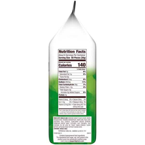 Enriched Wheat Flour (flour, Niacin, Reduced Iron, Thiamine Mononitrate, Riboflavin, Folic Acid), Vegetable Oils (canola, Sunflower And/or Soybean), Parmesan Cheese (milk, Cultures, Salt, Enzymes), Salt, Contains 2% Or Less Of: Yeast, Onion Powder, Sugar, Butter, Autolyzed Yeast Extract, Baking Soda