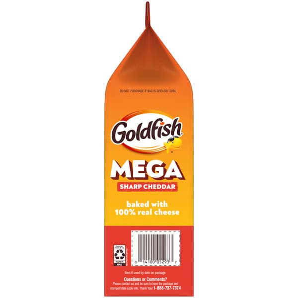 Get ready to enjoy a snack that’s mega crispy and mega delicious with Goldfish® Mega Bites Sharp Cheddar Crackers! These baked snack crackers are big and crispy and packed with real sharp cheddar cheese flavor in every crunchy bite. Imagine a satisfying crunch that gives way to a cheesy taste explosion, perfect for those moments when you want to bring mega fun to snack time. Whether you share with friends during movie nights or add to lunchboxes, these crackers bring a touch of excitement to snacking at any time. Always baked, never fried, these mega Goldfish crackers deliver maximum flavor with satisfying crunch. Grab a bag of Goldfish® Mega Bites Sharp Cheddar Crackers for a bold, cheesy snack!