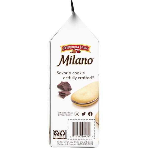 Elevate any moment with Pepperidge Farm Milano Double Dark Chocolate Cookies. Whether it’s a book club meeting with friends or a holiday celebration with the family, Pepperidge Farm Milano Cookies are the special treat your occasion needs. Delicate, sweet and oh so indulgent, our double dark chocolate cookies have twice as much rich dark chocolate as our classic Milano cookies. Enjoy these elegant sandwich cookies with a cup of coffee or tea in the afternoon, or pair them with a glass of wine after dinner. Each 7.5-ounce bag contains 15 cookies and is perfect for sharing with friends or stashing in your pantry to satisfy your cravings for sweet snacks. Looking for a quick and easy dessert to wow your party guests? Pepperidge Farm Milano cookies are fun to decorate for holidays and other special occasions. In addition to Double Dark Chocolate, Pepperidge Farm Milano cookies are available in irresistible varieties to match any mood, including Milk Chocolate, Mint Chocolate and more. Pepperidge Farm cookies are crafted with care and quality ingredients by creative bakers who believe baking is more than a job – it’s a passion.