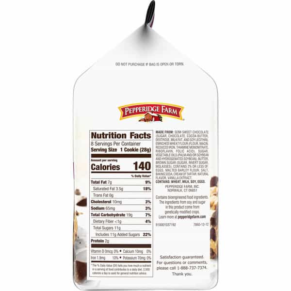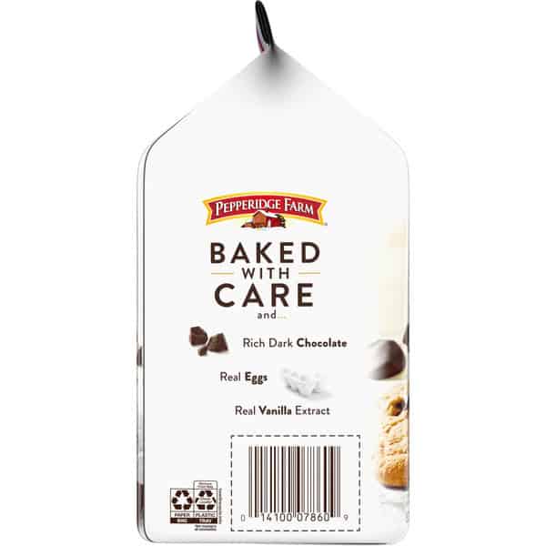 Enjoy the homemade taste of Pepperidge Farm Nantucket Crispy Double Dark Chocolate Chunk Cookies. Made with a double abundance of rich dark chocolate chunks, these sweet and crispy cookies have a delicious melt-in-your mouth flavor. Every batch is baked with care and quality ingredients, including real eggs and real vanilla extract. Each 7.75-ounce bag contains 8 dark chocolate chip cookies and is perfect for sharing or stashing in your pantry to satisfy your cravings for sweet snacks. Enjoy Pepperidge Farm Nantucket Cookies on their own, dunk them in a cold glass of milk, or pair them with a hot cup of coffee. Looking for a quick and easy dessert idea for your next party? These chocolate chunk cookies are great for serving on cookie platters and can be used to make other sweet treats such as ice cream sandwiches and sundaes. In addition to Nantucket Double Dark Chocolate Cookies, our line of chocolate chunk cookies also includes Montauk Milk Chocolate Cookies, Chesapeake Dark Chocolate Pecan Cookies, and more. Pepperidge Farm cookies are crafted with care and quality ingredients by creative bakers who believe baking is more than a job – it’s a passion.