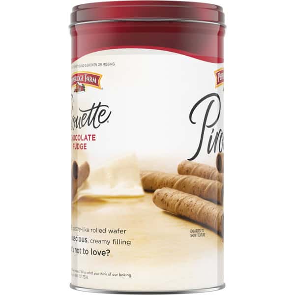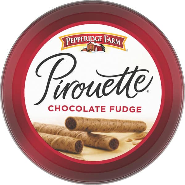 Whether paired with morning tea or coffee, added as an adorable cupcake decoration, or partnered with ice cream, Pepperidge Farm Pirouette Chocolate Fudge Créme-Filled Wafers deliver absolute indulgence in every perfect bite. These pastry-like wafers are baked to a delicate crisp, and filled with a luscious, creamy chocolate fudge filling. They have a European flair that makes serving them extra special – even if it’s a treat just for you. The 13.5-ounce tin helps keep them fresh, so you can continue to savor the sophisticated sweetness. These Pepperidge Farm Pirouette Chocolate Fudge Créme-Filled Wafers are beautifully crafted because, for Pepperidge Farm, baking is more than a job, it’s a real passion. Each day, our bakers take the time to make every cookie, pastry, cracker, and loaf of bread the best way they know how — by using carefully selected, quality ingredients. So go ahead and give in to delicious indulgence.