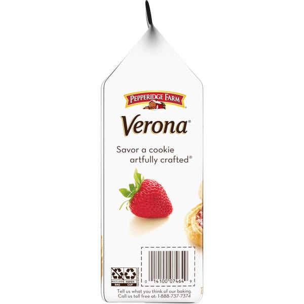 Experience a fruit-flavored classic with Pepperidge Farm Verona Strawberry Thumbprint Cookies. Pepperidge Farm Verona Cookies are a delightful twist on traditional thumbprint cookies, featuring shortbread golden baked to a delicate crisp and the sweetness of strawberry filling. They’re a delicious treat to your taste buds! Each 6.75-ounce bag contains 18 bite-sized cookies and is perfect for sharing with friends or stashing in your pantry to satisfy your cravings for sweet snacks. Enjoy these scrumptious shortbread cookies on their own, pair them with a hot cup of coffee or tea, or use them on your snack boards or cookie platters when entertaining. In addition to Strawberry, Pepperidge Farm Verona Cookies are available in other fruit flavors, including Cherry, Blueberry and Apricot Raspberry. Pepperidge Farm cookies are crafted with care and quality ingredients by creative bakers who believe baking is more than a job – it’s a passion.