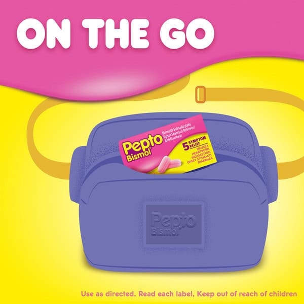 Pepto Bismol Caplets for Nausea, Heartburn, Indigestion, Upset Stomach, and Diarrhea – 5 Symptom Fast Relief in Convenient Form.When you need upset stomach relief, Pepto Bismol Caplets provide fast and effective multi-symptom relief from nausea, heartburn, indigestion, upset stomach, and diarrhea. A convenient and easy to use over-the-counter medicine – Pepto Bismol is formulated to coat your digestive tract to calm and soothe and provide fast and effective 5 symptom relief. The convenient chewable form allows you to take Pepto Bismol on-the-go so you can travel worry-free. Take Pepto Bismol at the first sign of digestive issues so you can get rapid relief. Pepto Bismol also provides relief from multiple stomach upsets so you can get back on track fast! From the maker of the #1 Pharmacist Recommended Upset Stomach Brand – Pepto Bismol.As a part of the P&G family, Pepto Bismol has high quality standards for all our products. Pepto Bismol has been a trusted brand for the treatment of upset stomachs for over 100 years. *May be HSA/ FSA eligible.*Based on Pharmacy Times 2022 Survey-upset stomach remedies category