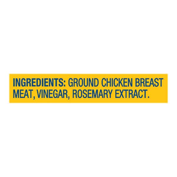 Ground Chicken Breast Meat, Vinegar, Rosemary Extract.