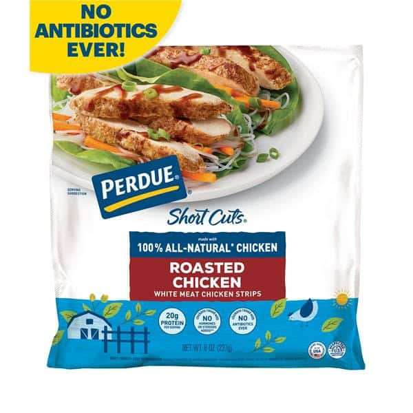 With PERDUE® SHORT CUTS® Roasted Chicken Strips, you can make meal prep a breeze. Skip the wait and pair our fully cooked and perfectly seasoned chicken breast strips with your family’s favorite taco, rice, and fajita recipes. Marinated in herbs and spices, these sliced chicken strips can elevate any wrap or pasta dish. At PERDUE®, we’re hungry for better chicken and that means paying attention to all of the details, no matter how big or small. Raising our chickens with no antibiotics ever is just one of those details. Taste the difference that we believe comes from our relentless pursuit of better-tasting chicken by tossing our tender chicken in your soups, salads and sandwiches for a simple dinner. With 20g of protein per serving, these pre-cooked and sliced chicken strips make snacking easy. Whether you eat them out of the bag or add them to a quick wrap, these roasted chicken breast strips are delicious and ready to eat when you are. At PERDUE, we strive to be the most trusted name in food and agricultural products. We believe our practices – like providing healthy feed and a happy environment for our chickens – leads to better-tasting chicken. Take one bite of PERDUE® SHORT CUTS® Roasted Chicken Strips and we think you’ll agree.