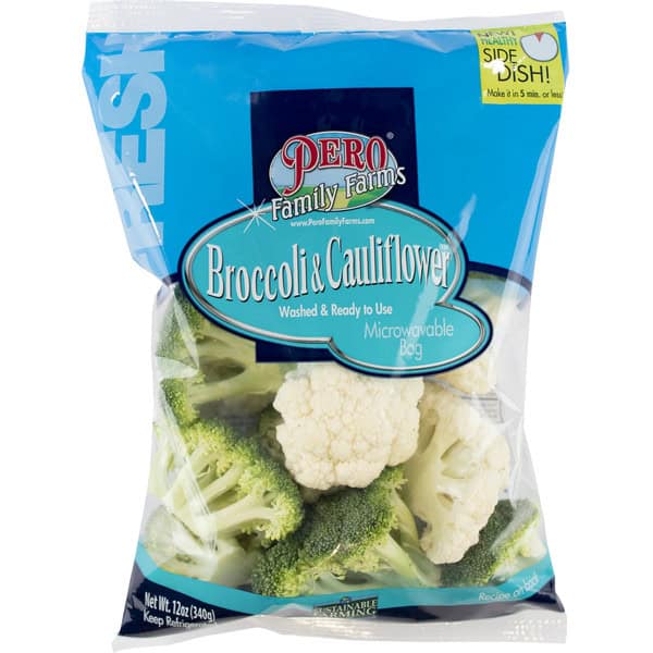 New! Healthy side dish! Make it in 5 min. or less! Washed & ready to use. www.PeroFamilyFarms.com. Microwaveable bag. Sustainable farming. Produce of USA.