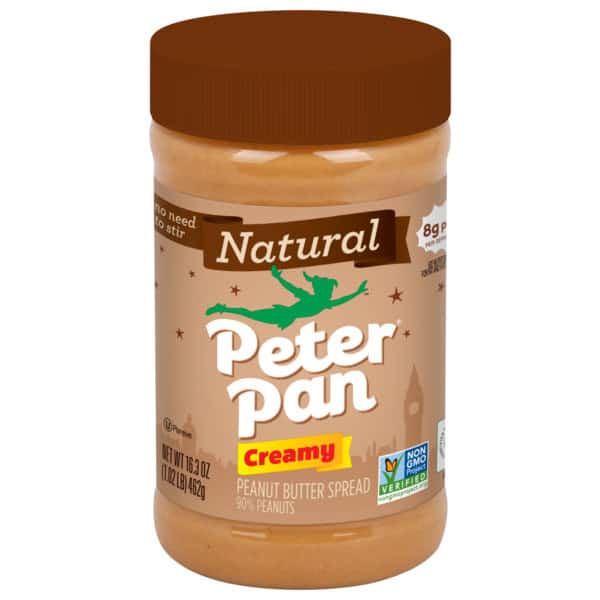 Enjoy as part of a deliciously healthy snack with Peter Pan Natural Creamy Peanut Butter Spread. Peter Pan’s natural peanut butter spread gives you the rich, spreadable flavor you love, with just four simple ingredients. Snack naturally with no high-fructose corn syrup or hydrogenated oils. Plus, there’s zero grams trans fat per serving. Spread it, scoop it, dip it, or bake it-Peter Pan’s Natural Peanut Butter Spread can be used in a variety of ways. Each jar contains 16.3 oz of peanut butter spread and 210 calories per serving. With rigorous safety processes, Peter Pan maintains high quality standards across every part of the business.