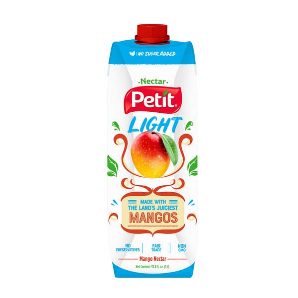 Water, Mango Pulp Concentrate, Acacia Gum (Soluble Fiber), Citric Acid (Acidulant), Vitamin C (Ascorbic Acid), Sucralose (Sweetener)and Natural Flavor.