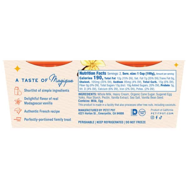 Dig in for a vanilla bean treat so smooth and creamy, you’ll feel like you’re sitting in a Parisian cafĂ©. Made with real Madagascar vanilla and a short list of simple ingredients, this perfectly-portioned dessert will make you and your family say ooh la la!