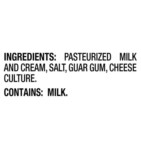 Pasteurized Milk And Cream, Salt, Guar Gum, Cheese Culture.
