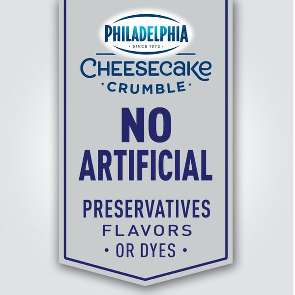 • Our single serve PHILADELPHIA Cheesecake Crumble dessert contains strawberry sauce and real graham crumbles