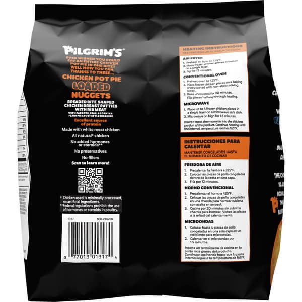 If you’ve ever wished you could eat an entire chicken pot pie in one bite, then these loaded nuggets are for you! Pilgrim’s Chicken Pot Pie Loaded Nuggets are a delicious all-in-one-bite of chicken, carrots, peas and corn all in a flaky pie crust style breading. Just like Granny used to make it.