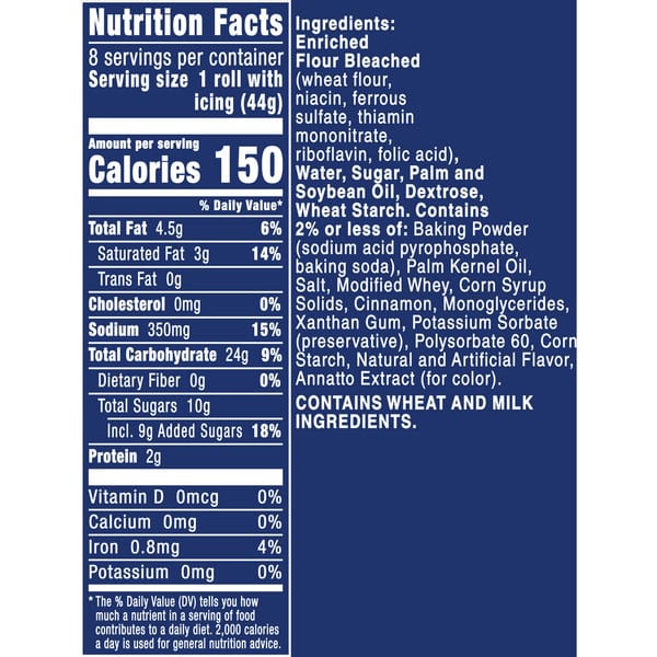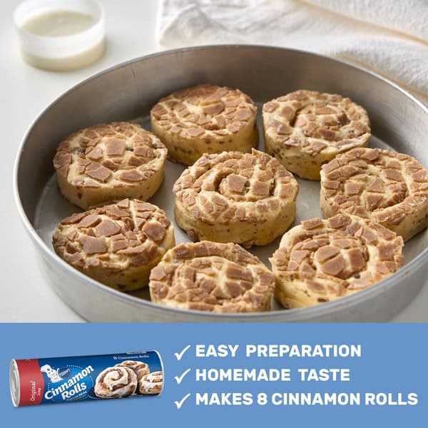 • CONTAINS: One 12.4 oz can of Pillsbury Cinnamon Roll Refrigerated Dough with Original Icing; Makes 8 rolls