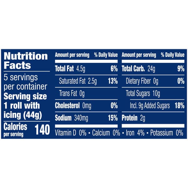 • CONTAINS: One 7.3 oz can of Pillsbury Cinnamon Roll Refrigerated Dough with Original Icing; Makes 5 rolls
