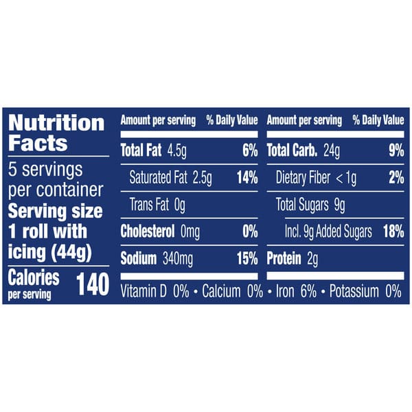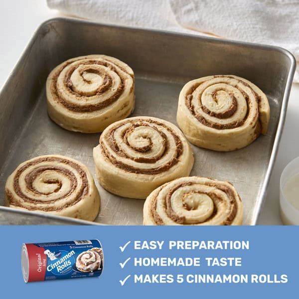 • CONTAINS: One 7.3 oz can of Pillsbury Cinnamon Roll Refrigerated Dough with Original Icing; Makes 5 rolls