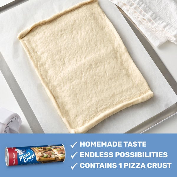 Homemade pizzas are as easy as pie with Pillsbury refrigerated pizza crust dough. Unlike frozen pizza crust, Pillsbury pizza crusts come refrigerated and ready to go. Just unroll one on a sheet pan, add your favorite toppings and bake. Oven-fresh pizza in minutes. Pillsbury Pizza Crusts are great for regular pizzas, fruit pies, calzones and more. No mixing, no big mess. And no high-fructose corn syrup or artificial flavors. Just the fresh-baked perfection of a homemade pizza crafted to your own particular tastes. Bring your family together around an all-time favorite. Make pizza night your easy night, with Pillsbury Pizza Crusts, from refrigerated pizza dough.