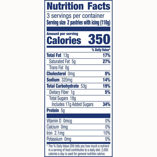Toasting Directions: Do not leave toaster or toaster oven unattended while heating product. 1. Set toaster or toaster oven on low to medium setting. 2. Toast frozen pastry 1 to 2 cycles or until hot and golden brown. Do not use metal utensil to remove pastry from toaster. Air Frying Directions: Do not leave air fryer unattended while heating product. 1. Place frozen pastries in single layer in air fryer basket. 2. Cook 3 minutes at 350 degrees F. Flip pastries over. Cook an additional 2 to 3 minutes. Caution: Pastries will be hot! Directions developed using 6-quart air fryers; times may need to be adjusted. Icing Directions: Tear or cut off icing packet along perforation. Tear or cut across top of packet. Squeeze icing onto hot pastry. Caution: Pastry will be hot!