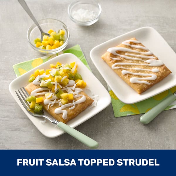 Taste this sweet way to top any morning! Pillsbury Cream Cheese and Strawberry Toaster Strudel Pastries are a quick and irresistible part of any breakfast. Every warm bite brings together the iconic combination of flaky pastry crust, cream cheese and strawberry flavored filling, and creamy icing. Toaster Strudel Pastries make a great-tasting breakfast option for even your busiest days. Keep these toaster pastries in the freezer until you’re ready to pop ’em into the toaster or air fryer. Then follow the simple steps on the package to heat, add icing, and enjoy. Ready in minutes with no fuss, Toaster Strudel pastries are an easy, quick bite that’s perfect on the way to work or school. At Pillsbury, we strive to make home baked moments extra special through our products and recipes, which help make cooking and baking easy and convenient for even the busiest families. Contains one cardboard carton of Frozen Pillsbury Toaster Strudel Pastries, Cream Cheese and Strawberry, 6 Ct, 11.7 oz; an instant delicious snack after toasting.