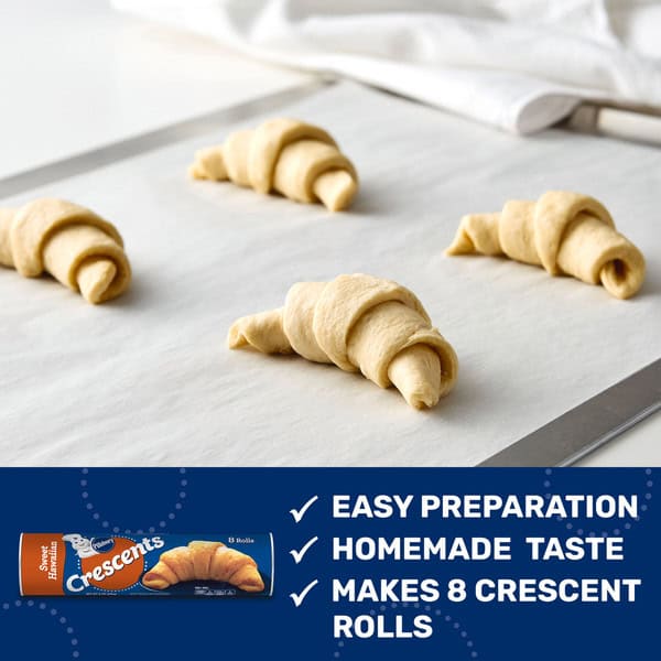 Make weeknight dinner a success with the home-baked goodness of Pillsbury Sweet Hawaiian Crescent Rolls. Known for their flakiness and fluffiness, these rolls are a hit with even the pickiest of eaters. This pack of refrigerated dough makes 8 crescent rolls. Use this crescent dough to create delicious possibilities as part of breakfast, lunch or dinner. Crescents are ready in minutes. No mixing, no mess. Hungry for meal inspiration? Simply fill, roll and bake for dinner ideas that are quick and easy to get on the table. Choose from dozens of Pillsbury recipes to find a new way to enjoy crescents any day of the week.