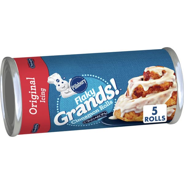 Slow down and savor the morning together with warm, freshly-baked Pillsbury Flaky Grands! Cinnamon Rolls. It’s easy to make any day cinnamony sweet with Pillsbury’s ready-to-bake flaky dough made with Cinnabon cinnamon and premade Original icing. These refrigerated cinnamon rolls make a great weekday breakfast or special holiday treat. Ready in minutes, these deluxe cinnamon rolls will quickly become a family favorite. Imagine the memories you’ll make.